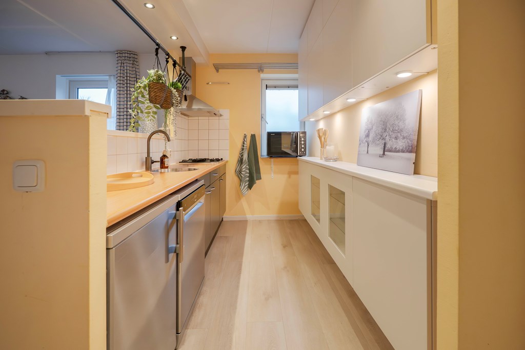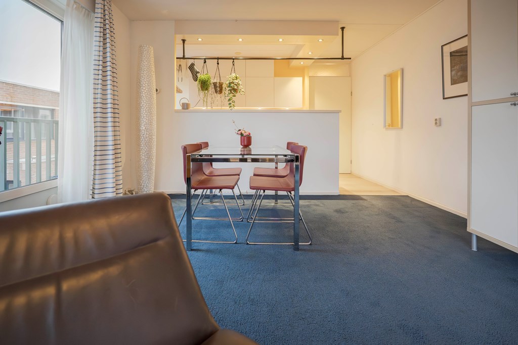 Op de eerste verdieping valt meteen de prettige lichtinval op. De overloop verbindt alle ruimtes en brengt je naar de woonkamer en keuken, die mooi in elkaar overlopen en samen één fijne leefruimte vormen. De badkamer is strak en functioneel, met een toilet en een inloopdouche. Verder zijn er twee slaapkamers, waarbij de grotere slaapkamer directe toegang biedt tot het balkon: een heerlijke plek voor je eerste koffie in de ochtend of een rustige avondlucht.