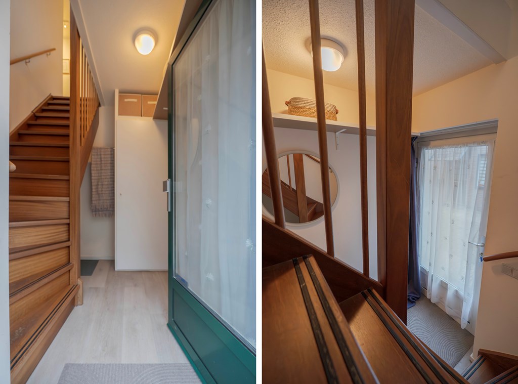 Via de entree op de begane grond kom je binnen en leidt de trap je direct naar boven. Praktisch en overzichtelijk, precies zoals je het wilt.
